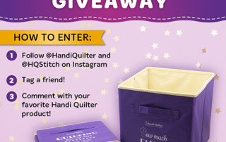 I hope you've watched the story of Kelsey Cooley, the first of many in our And I Quilt campaign. https://www.youtube.com/watch?v=7pQWYc6I1fY Now we're having a related giveaway on Instagram. Here's the scoop: The giveaway is for a foldable storage box for your quilting supplies. It's perfect for toting, organizing or stashing and it comes in our [...]